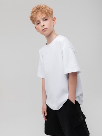 Описание и характеристикиСвободная футболка с коротким рукавом. На полочке принтАртикул4-460MUСостав100% хлопокМатериалкулирная гладьЦветбелый