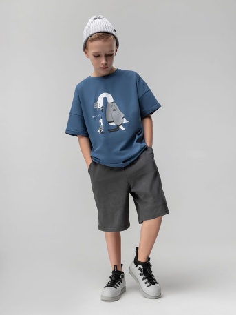 Футболка свободного силуэта со спущенным плечом с коротким рукавом. Горловина футболки округлой формы. Низ изделия и рукава не обработан. Шорты прямые свободные на поясе с внутренней резинкой. Шорты с боковыми карманами. Низ необработанный. Длина чуть выше колена.Артикул11-521МUСостав92% хлопок 8% лайкраМатериалфутер двухниткаЦветсерый -