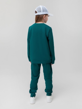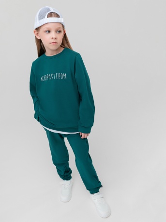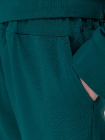 Прямая, свободная толстовка с поясом по низу изделия. По плечу и рукаву оформлена декоративной лентой с логотипом. Брюки прямые свободные на поясе с внутренней резинкой. Низ брюк с манжетой на резинке. Брюки с боковыми карманами.Артикул11-583MUСостав80% хлопок 20% полиэстерМатериалфутер трехнитка петляЦветизумрудный -