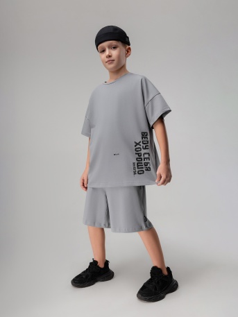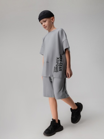 Футболка свободного силуэта с коротким рукавом. Шорты прямые, свободные с боковыми карманами.Артикул11-624MUСостав92% хлопок 8% лайкраМатериалкулирная гладьЦветсерый -