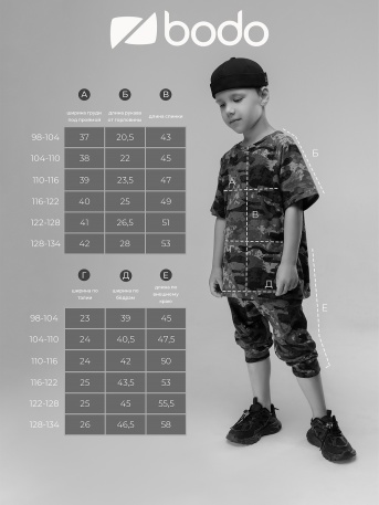 | Размер = рост | Возраст | Обхват груди, см. | Обхват талии, см. | Обхват бёдер, см. |
