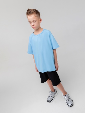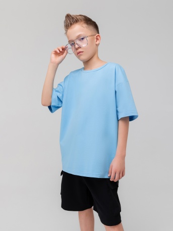 Футболка с короткими рукавами, свободный покрой, округлый вырез горловины. Шорты на поясе с эластичной резинкой, карманы с отрезным бочком.Артикул46-26МUСостав92% хлопок 8% лайкраМатериалкулирная гладьЦветголубой -