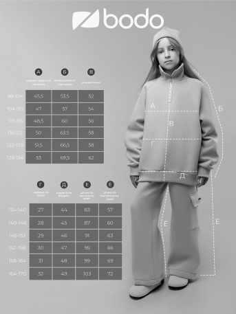 Размер = ростВозрастОбхват груди, см.Обхват талии, см.Обхват бёдер, см.